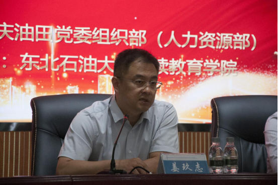 大庆油田人力资源部技能开发科科长姜玖志希望各位学员通过搭建青年技能骨干学习思考、交流共享、开阔视野的平台,为推进世界一流现代化百年油田建设的宏伟目标提供强有力的人才保障!