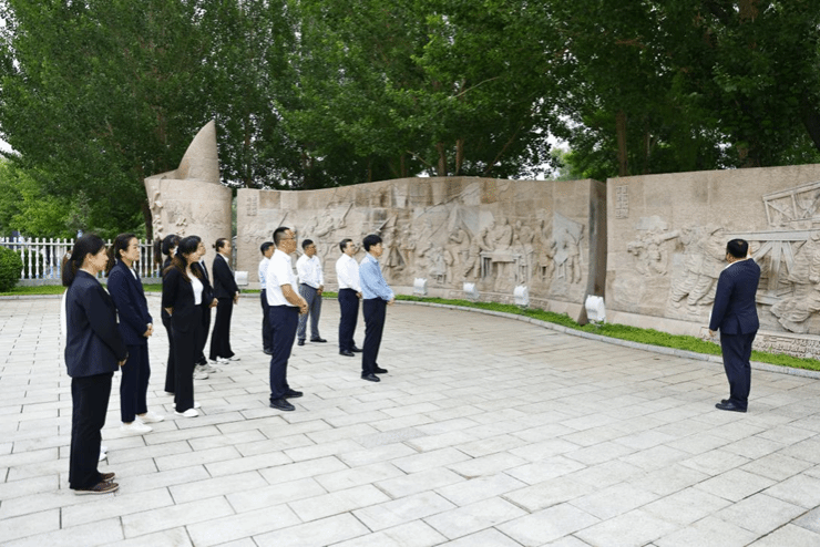 参观结束后,全体党员站在浮雕墙前、采油树下,面向党旗重温了入党誓词,使每一位党员干部再一次接受思想洗礼和升华,牢记党员干部的初心使命。副校长张亚志以普通党员身份参加活动。