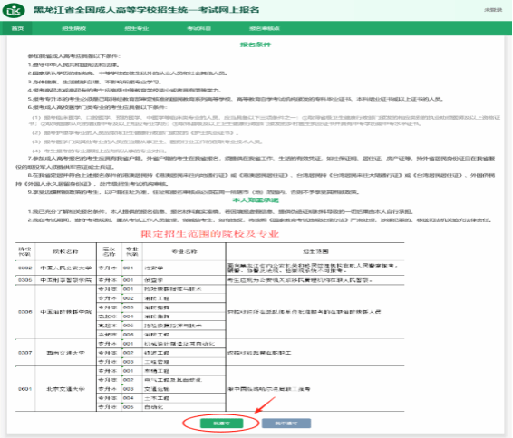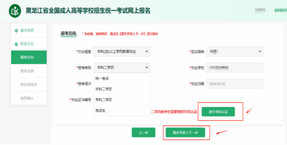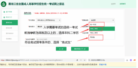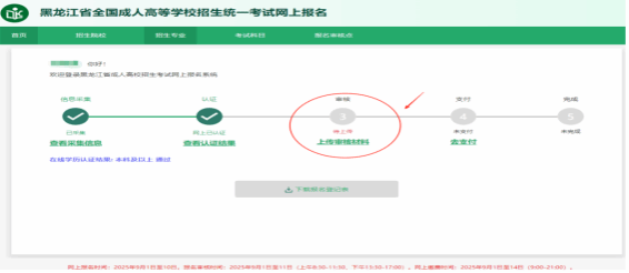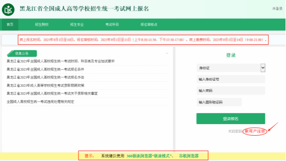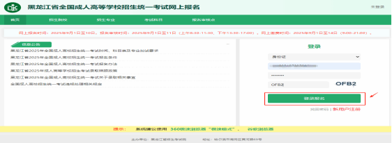 【注意】①如果报考类别选择统一考试的,考生可于10月10日开始凭密码登录黑龙江省招生考试信息港成人高考网报系统下载打印《黑龙江省2025年全国成人高校招生统一考试准考证》,按考试时间、地点参加考试。待成绩发布后,于11月17日至23日再次登录报名系统,进行正式志愿填报。
