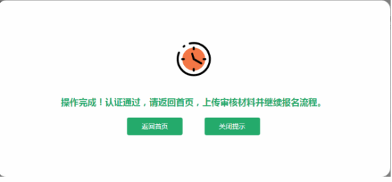 21. 点击“关闭提示”“返回首页”,然后点击“上传审核材料”。