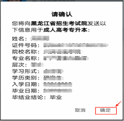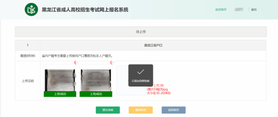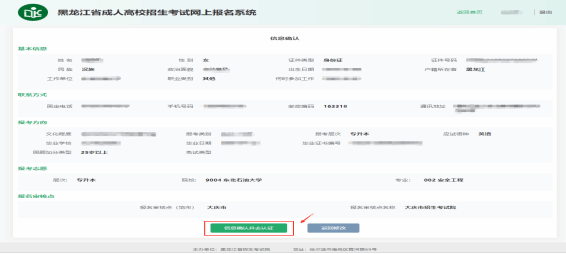 13.点击确定后,返回黑龙江省报名信息港报名界面,会有如下提示。