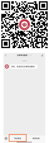 学生微信需关注北京网梯学位外语考试服务公众号,进入对话界面,下方点击考试报名: