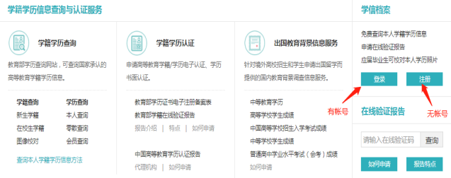 第二步,点击“登录”学信档案按扭。如果没有注册,点击注册学信网帐号。